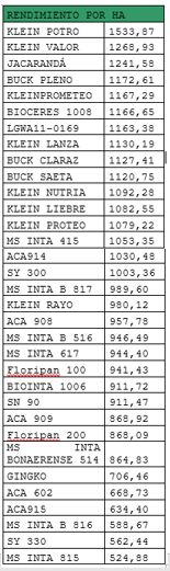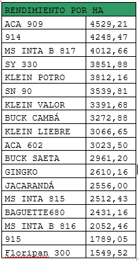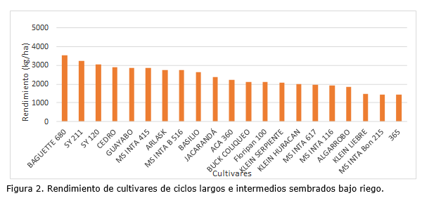 Tabla 5: Rendimiento de cultivares de ciclos largos e intermedios sembrados bajo riego