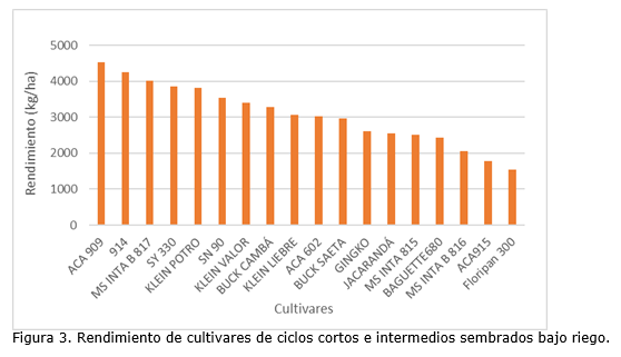 El mayor rendimiento promedio se logró con cultivares de ciclos largos e intermedios bajo riego.