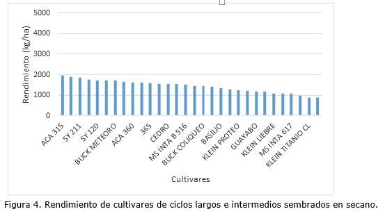 Tabla 9: Rendimiento de cultivares de ciclos largos e intermedios sembrados en secano
