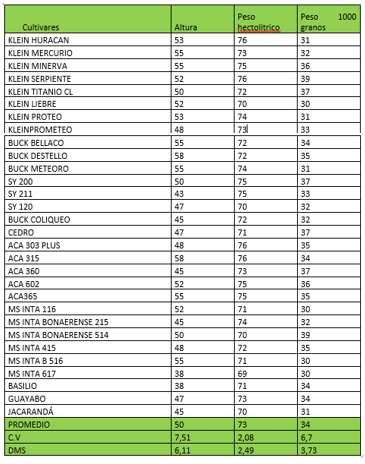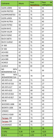 En la campaña las condiciones climáticas fueron favorables y no se presentaron enfermedades con gran severidad, por lo que el cultivo se vio favorecido en lograr buen peso de mil granos.