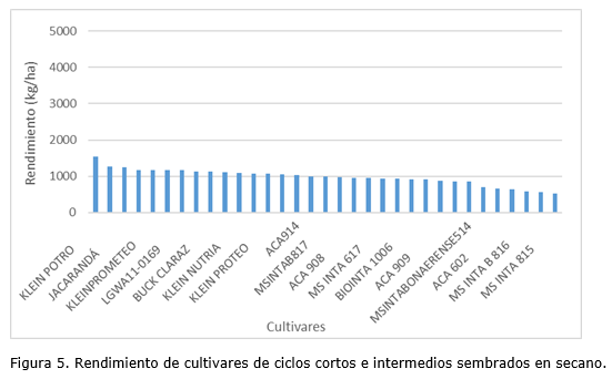 Tabla 11: Rendimiento de cultivares de ciclos cortos e intermedios sembrados en secano.