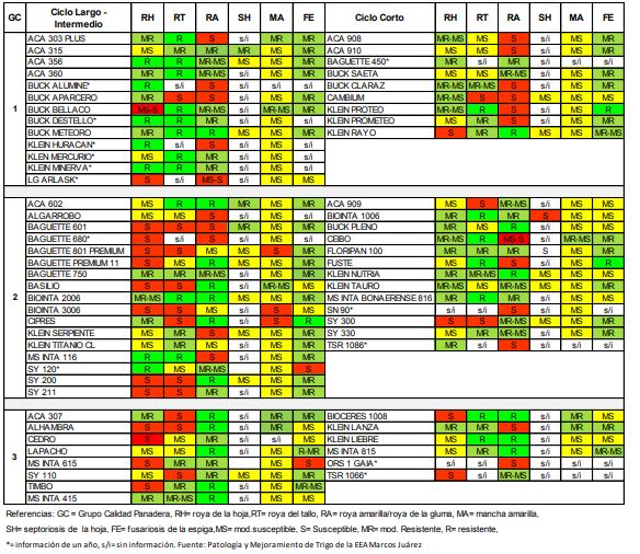 Es importante considerar el comportamiento sanitario esperado de las variedades actualmente disponibles frente a las principales enfermedades y así realizar una correcta elección de cultivares según el ambiente de producción y la estrategia de manejo para la presente campaña 2018 (Cuadro 6).