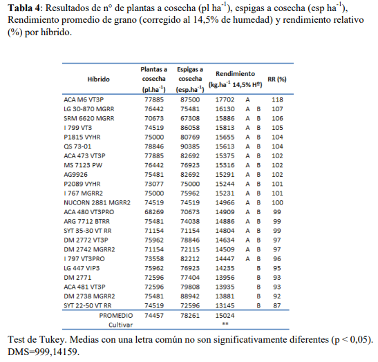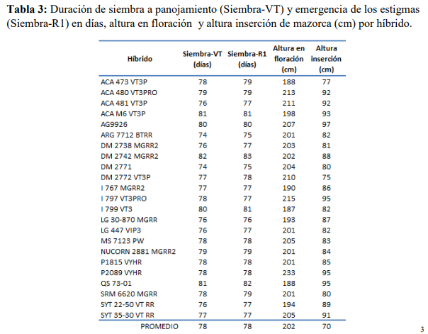 En las tablas 3 y 4 se presentan los resultados de las variables agronómicas de interés, rendimiento de granos y componentes de cada cultivar.