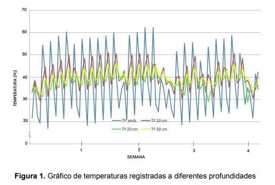 Las temperaturas alcanzadas durante la biosolarización (temperatura ambiente a 1 m de