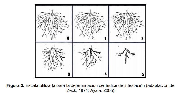 presencia de agallas producidas por nematodos (Figura 2). Esta escala es una adaptación
