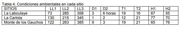 En la tabla 4 se presentan los resultados de las condiciones ambientales ocurridas en cada lote desde la implantación hasta madurez fisiológica del cultivo.