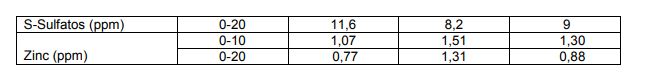 No hubo respuesta a la aplicación de zinc en ninguno de los sitios donde se evaluó este nutriente aun cuando en dos de ellos los valores de este nutriente en el suelo fue inferior al de 1ppm considerado valor crítico.