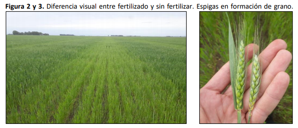 La fertilización de cualquier cultivo (destinado a la ganadería o a la agricultura) en nuestra región es una de las decisiones debatidas hace tiempo. Esto se debe a que, porlo general la precipitación y la heterogeneidad de suelos, afectan en distinta magnitud la respuesta al agregado externo. Además, dentro de las distintas variantes que afectan las decisiones podemos encontrar precios elevados de insumos, la limitación de rendimiento, el efecto de la sequía, la distribución de las precipitaciones, el bajo contenido de materia orgánica de los suelos, la profundidad efectiva, la respuesta de la especie vegetal, etc. Todas juegan un papel importante a la hora de tomar una determinación. Diversos estudios establecen que un manejo estratégico de la fertilización (dosis y momento de aplicación) contribuyen no solo a lograr altosrendimientos,sino también a obtener una buena calidad del grano (Howard, 2002; Kruger 2011; Zilio, 2019). Para ello es necesario conocer las condiciones edáficas y la demanda establecida por el tipo de cultivo. En el caso del Trigo, el nitrógeno (N) es un elemento indispensable para maximizar el rendimiento y la calidad. Álvarez et al. (2004), establecieron que la cantidad N requerida por tonelada de trigo producida, rondaría entre 30-35 kg N por Tn grano extraída.