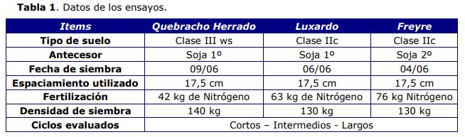 En la tabla 1, se describen algunas de las características de las localidades en donde se ubicaron los ensayos.
