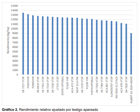 - Los híbridos que se destacaron fueron DK 7227 VT3P, P1815 YHR, P2005 YHR, DK6910 VT3P y en un segundo nivel DK7220 VT3P, LT723 VT3P, SY979 VIPTERA3, P2103 YHR, ACA473 VT3P, NEXT 22.6 PW, DK 7270 VT3P, P2109 YHR Y SY875 VIPTERA3.