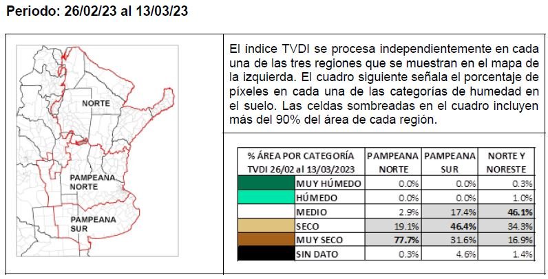 La evolución temporal del índice satelital TVDI puede consultarse en http://www.ora.gob.ar/tvdi.php , donde también se expone la metodología de obtención del índice TVDI.