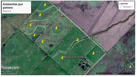 Como actividades prácticas se confeccionó del mapa base de la reserva 5, con la delimitación del establecimiento, la división de potreros y la identificación de ambientes de pastizal.