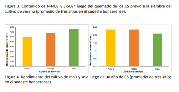 La inclusión de CS genera cambios en el ambiente suelo y dependiendo de/l el/los servicios que uno desea priorizar, será la elección de la especie, fecha de siembra, momento de quemado. Los CS producen efectos que son más visibles en el corto plazo (reducción en el número de malezas, disponibilidad de N y S) y otros en el largo plazo (resistencia mecánica a la penetración, densidad aparente, infiltración, estabilidad de agregados, etc). Todo esto contribuye a mejorar la salud del suelo, aportando a la sustentabilidad de los sistemas productivos.