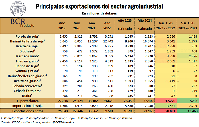 Exportaciones del agro: se prevé una recuperación del 56% para el 2024