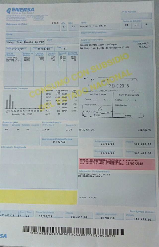 ue una gran sorpresa para los productores arroceros de Entre Ríos cuando recibieron boletas de luz por parte de la empresa provincial Enersa con valores de entre 200.000 y 300.000 pesos. Los productores observaban con estupor las facturas correspondientes al consumo de noviembre y diciembre de 2017, período que comienza el riego del grano y que se extiende hacia mediados de febrero.
