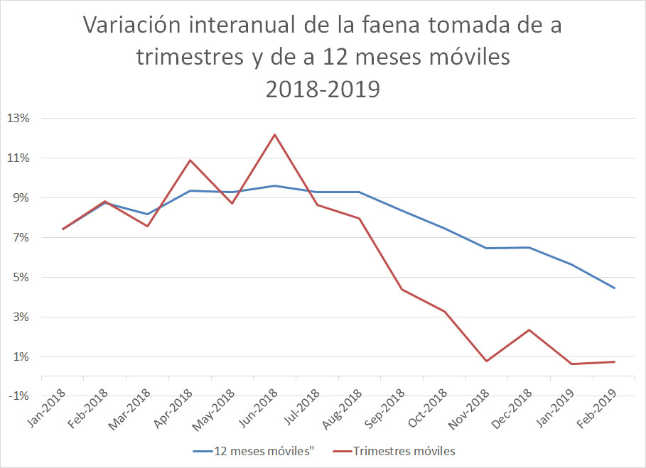 Sumando todo, la faena total pasó de +8 a +4% entre los mismos meses.