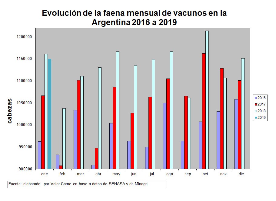 En enero, se despacharon para faena 1,15 millones de animales, igual que en diciembre y 1% menos que en enero anterior.