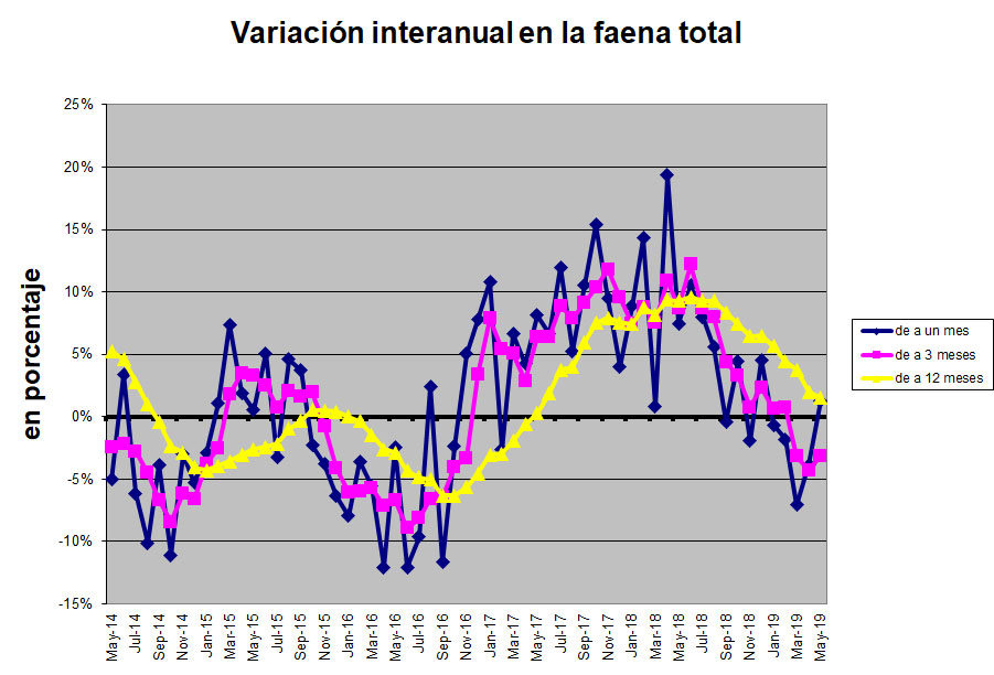 Tal tendencia a la moderación de la faena, que se vio parcialmente interrumpida en mayo, debido a la cantidad de días hábiles, seguramente se verá compensada en este junio que, con un número inusualmente bajo de días laborables (17, dos feriados y el día del obrero de la carne), retomará tal camino hacia la reducción de la cantidad de ganado procesado.