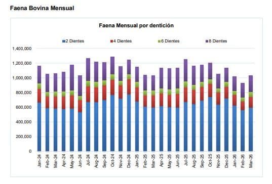 La faena bovina volvió a tomar impulso en marzo y dejó un dato clave para el negocio ganadero: se procesaron 1,029 millones de cabezas, con una suba del 12,2% respecto a febrero, aunque con una leve caída interanual del 0,2% frente a marzo de 2025.
