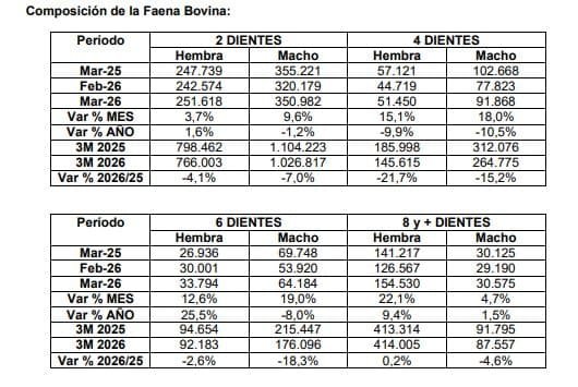 En el mes de marzo de 2026, la faena de hembras se situó en un 47,8% de la faena total,