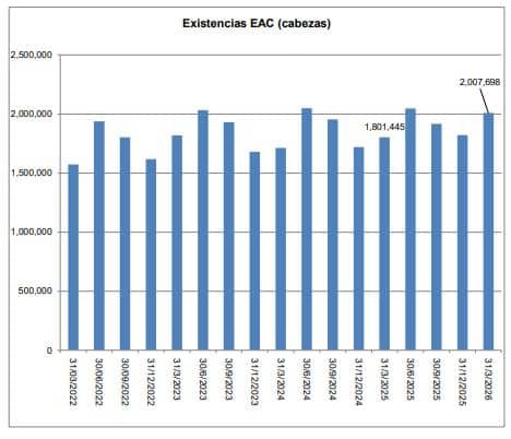 Al 31 de marzo de 2026, los establecimientos de engorde a corral acumulan existencias