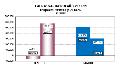 A pesar del ligero cambio advertido en noviembre, a lo largo de 2020 se registró un incremento de la participación de machos dentro de la faena nacional, una modificación importante en relación a los últimos años. En los últimos doce meses se faenaron 14.3 millones de cabezas, 454 mil cabezas más que en los doce meses cerrados en noviembre de 2019. En este crecimiento los machos aportaron 516 mil animales, que compensaron la reducción de las hembras. Una tendencia contrapuesta se registró en el ejercicio 2019/18.