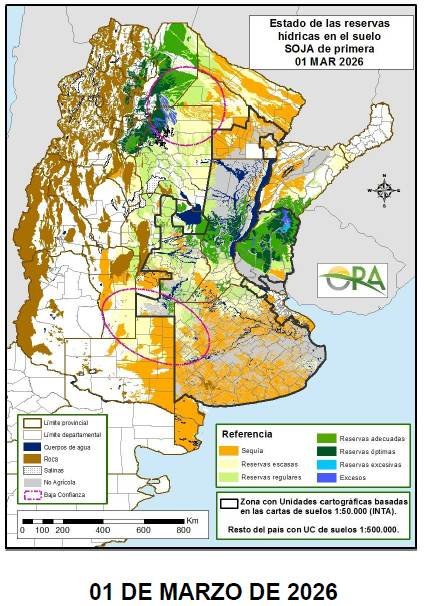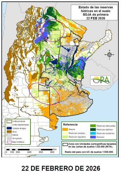 El análisis surge del monitoreo agrometeorológico de reservas de agua en suelo y del estudio de anomalías de precipitación de febrero, junto con el pronóstico climático trimestral vigente.