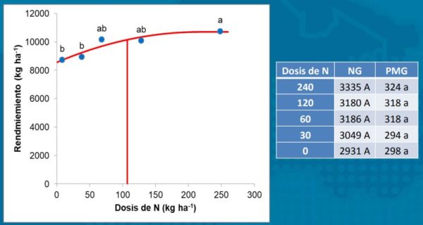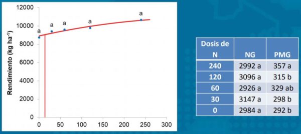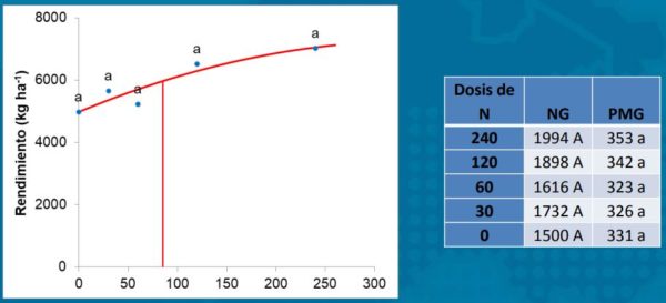 Fertilización de base: 75 DAP (18-46-0). En la curva respuesta se consideraron 4.5 kg de N aportado por el DAP.