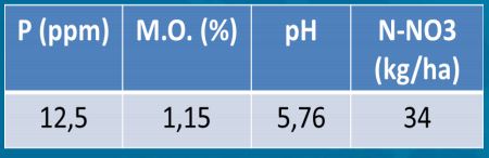 Agua a la siembra hasta el metro: 170 mm. Napa a partir de 1,20 m.
