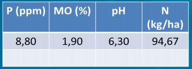 Agua a la siembra hasta el metro: 470 mm. Napa 1 m1.20m de profundidad.