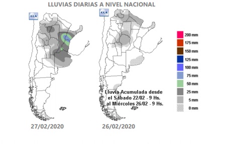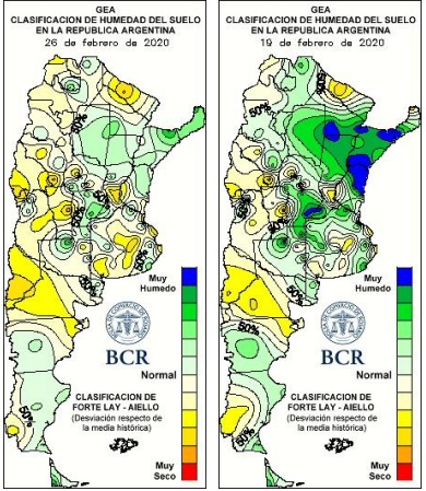 Febrero 2020: en el este de GEA llovió solo la mitad Si bien las lluvias de las primeras semanas de febrero consolidan la buena campaña sojera del este cordobés, el mes termina con más de 10 días de sequía. En la franja este de la región, desde el sur de Santa Fe hacia el norte, se acumuló entre 75 y 50 mm, prácticamente la mitad de los 120 mm que manda la media mensual. Con la mitad de agua y 10 días finales sin agua los cultivos de esta área han quedado seriamente vulnerados. En Rosario febrero termina con 63 mm. Los datos cambian hacia el centro y sobre todo hacia el oeste: Guatimozín recibió el mayor volumen de la región, unos 254 mm. El valor está apenas por debajo del máximo medido en los últimos 25 años en febrero, cuando en el 2016 se registraron 275 mm.