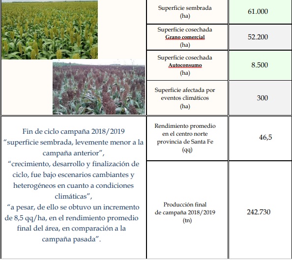Fin de ciclo del cultivo, campaña 2018/2019. Con una superficie sembrada de 61.000 ha, superficie cosechada (grano comercial) de 52.200 ha, con un rendimiento promedio de 46,5 qq/ha y una producción de 242.730 tn.