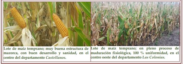 En los departamentos del norte del SEA, continuó el proceso de cosecha del maíz temprano, sumándose nuevas áreas, pero el avance del 2 % en la superficie del maíz temprano con destino comercial de 67.700 ha, estuvo regulada por los porcentajes de humedad de grano, que siguieron siendo altos, reflejando una disminución con el transcurso de los días pero, nuevamente se elevaron ante la inestabilidad climática que se presentó.