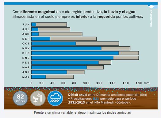No obstante, el técnico aclaró: “Aunque se realice el mejor manejo en secano, los cultivos tienen una demanda hídrica superior a la que obtienen del ambiente para alcanzar su máximo potencial productivo”.