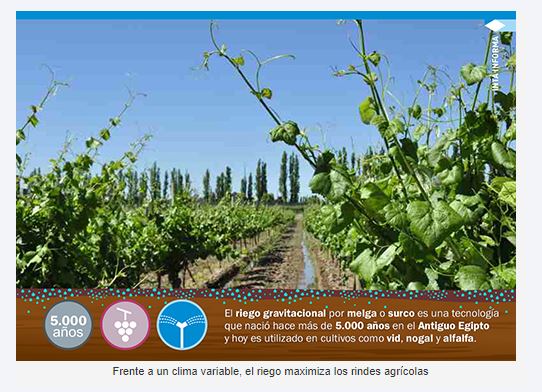 En esta línea, resaltó el potencial de trabajo para hacer en zonas áridas: “La superficie irrigada actual podría duplicarse a partir de la adopción de tecnologías que optimicen la aplicación de agua en sistemas de riego gravitacional”. Es decir que, con la misma cantidad de agua, se ampliaría el alcance productivo bajo riego.