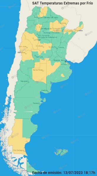 El Servicio Meteorológico Nacional emitió un alerta por frío extremo en 16 provincias.