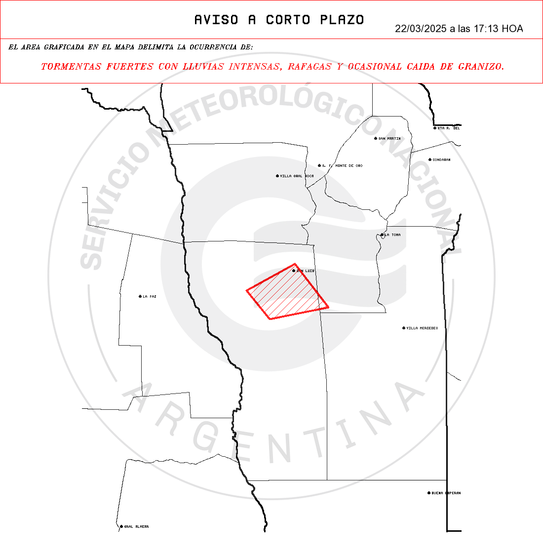 - Zonas: SAN LUIS: Chacabuco – Cnel Pringles – Gral Pedernera – Juan M. de Pueyrredón – Ldor Gral San Martín.