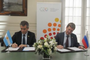 El titular de la cartera agroindustrial nacional encabezó dos reuniones bilaterales en el marco del G-20, la primera con la ministra Federal de Alimentos y Agricultura de Alemania, Julia Klockner, en donde se resaltó la importancia del multilateralismo y el comercio abierto y con el Viceministro de Agricultura de la Federación de Rusia, Serguey Levin con quien firmó un Memorando de Entendimiento para la Cooperación en materia de Biotecnología y Bioseguridad.