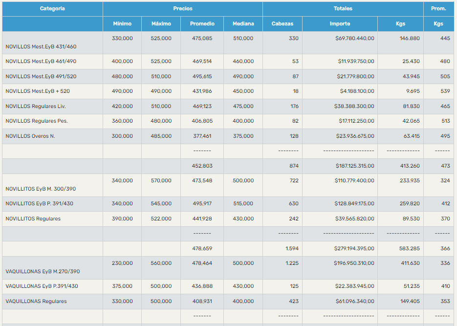 PRECIOS POR CATEGORIA EL MIÉRCOLES 03/05/2023