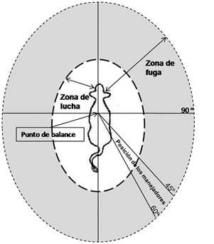 Figura 1. Zonas de fuga, zona de lucha y punto de balance de un animal.