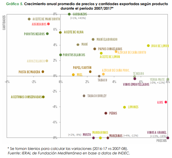 “En el caso de las legumbres, se destaca la gran irrupción del garbanzo, producto que era casi marginal en los inicios del período pero que hacia fines pasa a ser casi tan importante como los porotos, el otro protagonista fuerte del grupo. Las exportaciones de garbanzo crecieron (desde una base muy baja) al 43 por ciento anual promedio”, remarca el Ieral.