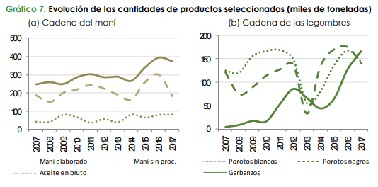 Se destaca una mayor colocación de maní procesado y sin procesar, con un promedio anual de crecimiento de entre cuatro y cinco por ciento, que estuvo acompañada además por una mejora de entre uno y dos por ciento en los precios internacionales.