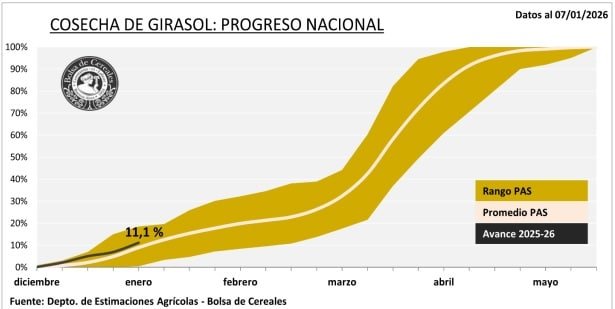 La campaña de girasol comienza a mostrar movimiento en los lotes y deja, por ahora, un primer balance alentador. La trilla avanza de manera gradual en distintas regiones del país, con resultados que superan los valores habituales para esta etapa del calendario. Sin embargo, el escenario climático introduce una cuota de cautela: la escasez de precipitaciones de las últimas semanas ya se refleja en la condición hídrica de los cultivos.