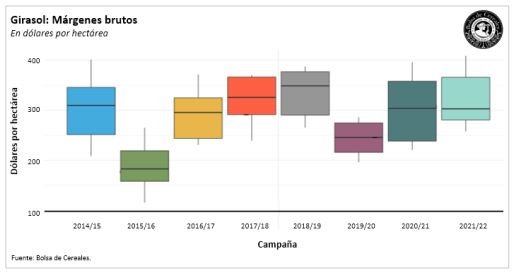 La campaña 2021/22 de girasol se encuentra afectada por un panorama internacional que alteró la tendencia alcista de precios que analizamos durante el Lanzamiento de Campaña Fina en mayo del corriente. No obstante, los precios domésticos aún superan los máximos registros para esta época del año y los márgenes continúan por encima de los de la campaña previa.