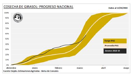 En el Norte de La Pampa-Oeste de Buenos Aires más del 40 % del girasol implantado ya se encuentra recolectado con rendimientos que oscilaron entre los 19 qq/Ha y 25 qq/Ha. A su vez, en los núcleos productivos del sur de Buenos Aires, la cosecha progresó con fluidez durante los últimos días sobre lotes tempranos con productividades que superaron a los acumulados durante la campaña previa.
