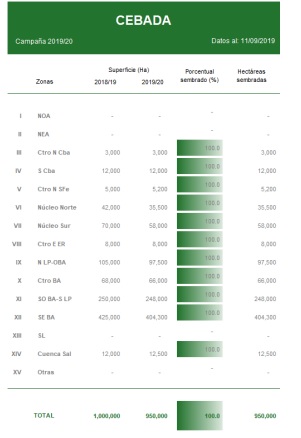 Las lluvias permitieron mejorar el estado de los cuadros de cebada, aunque aún se relevan lotes con signos de stress producto de las últimas heladas.