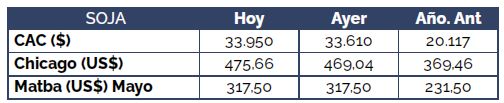 Por soja con entrega inmediata y contractual, se ofrecieron US$ 350/t, implicando un incremento de US$ 5/t respecto a la rueda previa. Este mismo valor también fue ofrecido para las fijaciones de mercadería.