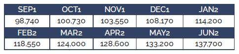 | Sep-22 | 261,34 | 2,20 | 261,80 | 2,02 | 206,98 | 1,77 | 466,38 | 1,75 | 1238,10 | 6,17 | 385,36 | 1,65 |