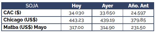 Por soja con entrega disponible, contractual y para fijaciones, la mejor oferta de compra se ubicó US$ 348/t, lo cual se ubicó US$ 3/t por encima de las ofertas de ayer. No obstante, no se descarta la posibilidad de mejoras por lotes de volumen. En moneda local las mayores ofertas fueron de $ 34.440/t.
