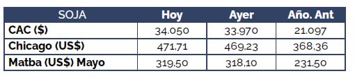 En el mercado de la soja, se presentaron menos ofertas abiertas de compra y una tendencia a la baja en los precios ofrecidos en sintonía con el mercado de Chicago. No se tuvieron posiciones abiertas de la próxima campaña comercial.